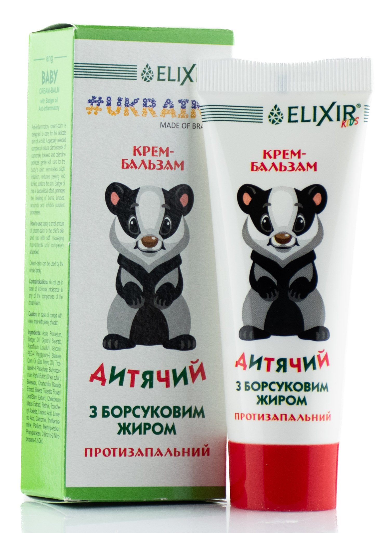 Zloženie: upravená voda, parafín, jazvečí tuk, glycerylmonostearát, glycerín, polyglyceryl-2 PEG-4-stearát, kukuričný olej, tricetearet-4 fosfát, bambucké maslo, včelí vosk, výťažok z harmančeka, dvojzubca obyčajného, skorocel, komplex vitamínov A, E, F , karbopol, TEA, parfumová kompozícia, metylparabén, propylparabén, 2-bróm-2-nitropropán-1,3-diol