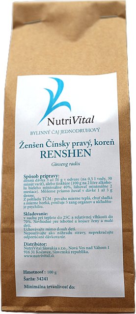 Jednodruhový bylinný čaj Ren-shen, ženšen čínsky – pravý vyniká skvelými povzbudzujúcimi vlastnosťami. Blahodárne pôsobí na každý orgán v tele. Prirodzene stimuluje telesnú i duševnú kondíciu. Pomáha pri psychickom napätí a pocitoch úzkosti. Ženšen čínsky – pravý napomáha telu získať a udržať si optimálnu rovnováhu. Poskytuje potrebnú energiu, silu a vitalitu. Dokonale eliminuje únavu a vyčerpanie. Ženšen priaznivo pôsobí v období menopauzy. Pomáha zmierňovať výkyvy nálad, návaly horúčavy, eliminuje nočné potenie či podráždenosť.