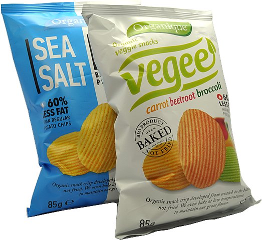 Ak patríte medzi tých, ktorí si radi pochutnajú na tejto slanej dobrote, no nepustí ich vysoký cholesterol, boja sa o svoju váhu, či sa rozhodli stravovať zdravšie, a preto si klasické chipsy vypustili zo svojho jedálnička, máme dobrú správu! Naše Pečené chipsy Bio sú najmodernejším spôsobom pečené pri nízkych teplotách, a nie smažené ako chipsy dostupné kdekoľvek v potravinách. Vďaka tomu sa pri ich príprave použije až o 60% menej tuku a ešte si k tomu zachovajú i výraznejšiu chuť. Pečené sú na rastlinnom oleji, čo určite poteší každého vegána. Možno si poviete, že je to len ďalší pekný obal a realita vnútri bude odlišná. No firma Organique si zakladá i na tom, aby jej výrobky nielen chutili, ale i vyzerali výborne!