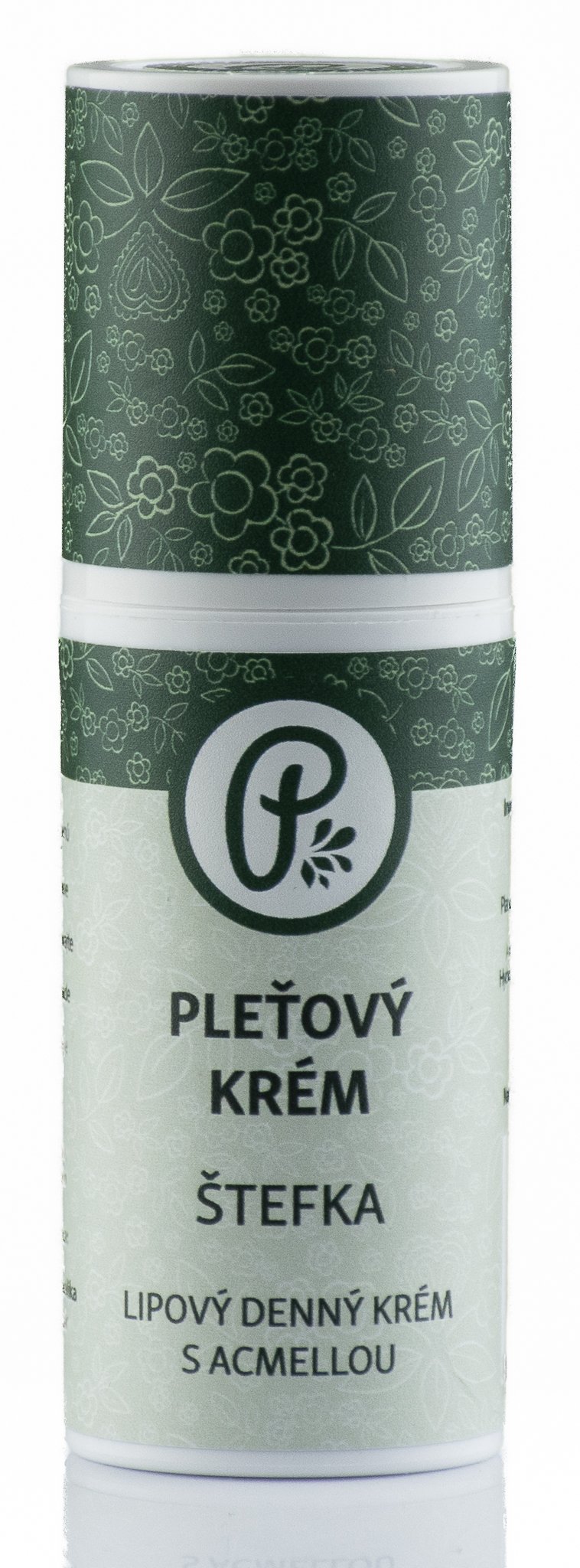 ŠTEFKA – Lipový denný pleťový krémPleťový krém s hodvábom – extra hydratačný a vyhladzujúci krém. Hodvábne proteíny a kyselina hyalurónová výborne viažu vlhkosť. Tekutý prírodný hodváb sa postará o svieži mladistvý vzhľad pleti. Olej z lipového kvetu Chráni citlivú pokožku pre infekciami. Vytvára totiž na koži obrannú bariéru a vykazuje ohromné regeneračné účinky, udržuje vodnú a tukovú rovnováhu, okamžite upokojuje podráždenie a naviac dodáva pokožke zlatistý nádych. Hodvábny proteín Ide o multifunkčnú ošetrujúcu látku, ktorá je určená na dôkladnú regeneráciu pokožky. Reguluje tiež rovnováhu jej vlhkosti a pôsobí protizápalovo. Vďaka hodvábnemu proteínu bude pokožka na dotyk jemná a viditeľne svieža. Pre vašu pleť len to najlepšieAcmella má protistarnúci efekt, vyhladzuje vrásky a vyrovnáva povrch pleti, ktorá pôsobí pružnejším dojmom.Extrakt z Plamatky (Spilanthes Acmella) má veľmi silné spevňujúce účinky. Stimuluje tvorbu kolagénu, uvoľňuje napätie v tvári, zmierňuje mimické vrásky a pokožku účinne vyhladzuje.Kyselina hyalurónová tajomstvo hydratovanej a vyplnenej pokožky. Najúčinnejšia hydratačná dermatologická aktívna látka 100% Prírodný produkt V súznení s prírodou Bez GMO Netestované na zvieratkách Patch test (test znášanlivosti)Patch test je jednoduchý a dôležitý krok na overenie, či vaša pokožka znesie nový kozmetický alebo dermatologický produkt bez nežiaducich reakcií. Naneste malé množstvo produktu na malú oblasť pokožky, napríklad na predlaktie alebo za ucho, a počkajte 24 až 48 hodín. Ak sa neobjaví začervenanie, svrbenie, opuch alebo iná reakcia, produkt môžete bezpečne použiť. Špecifikácie Návod na použitie: