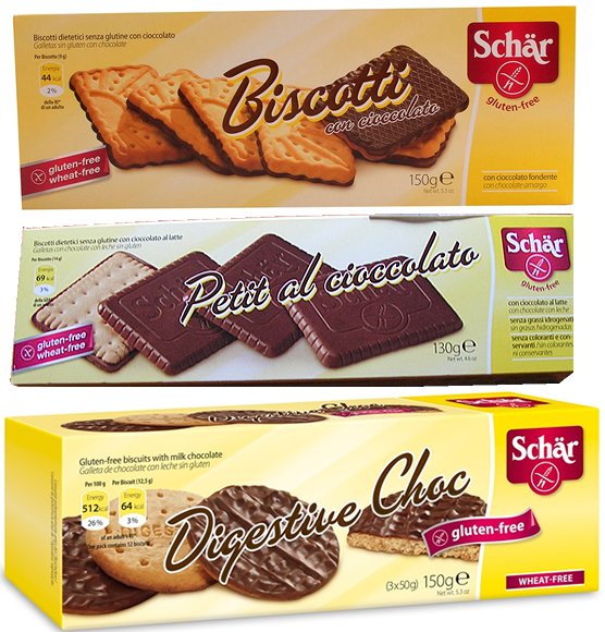 Bezlepkové sušienky SCHÄR polomáčané sú špeciálne vyrobené pochúťky pre ľudí s bezlepkovou diétou. Sú vyrobené so surovín, ktoré neobsahujú bielkovinu glutén a preto patria medzi dietetické potraviny.