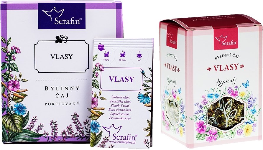 Vlasy sypaná čajová zmes vytvorená na základe potrieb vašich vlasov z bylín ako žihľava, baza, zlatobyľ, praslička, lopúch a prvosienka.