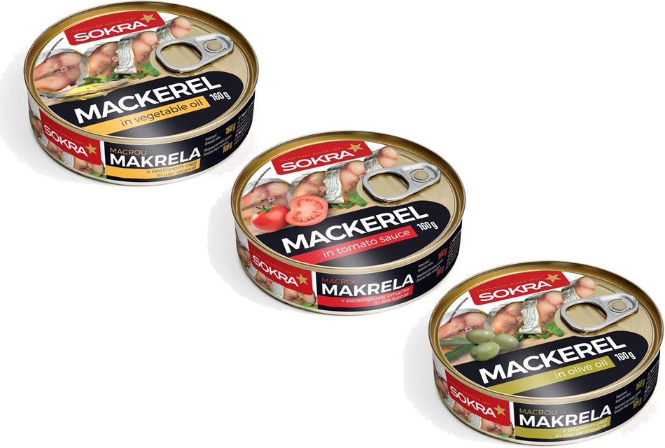 V mnohých častiach sveta sú makrely známe ako ryby bangada či makrelovka indická. Makrela s jemnou a krehkou svalovinou má rada otvorené more a brázdi ho v obrovských húfoch. Je skvelým zdrojom vitamínov A, C, D, E, K a skupiny B, omega-3 a omega-6 nenasýtených mastných kyselín. Ponúka vysoký podiel, bielkovín, vápnika, magnézia, fosforu, draslíka, zinku, medi a selénu. Makrela spoločnosti Sokra má jedinečnú chuť s lahodnou textúrou. V spoľahlivom balení s praktickým a jednoduchým otváraním ako super spoločník predstavuje správnu voľbu na cestách.