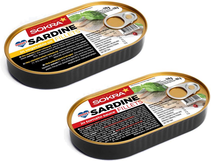 Rybie konzervy od lotyšskej značky Sokra sú vyrobené z kvalitného rybieho mäsa uloveného v Atlantickom oceáne. Sardinky sa pýšia lahodnou chuťou a príjemnou textúrou. Sú výborným zdrojom omega-3 mastných kyselín, zdravých tukov a bielkovín. Vyberte si z troch príchutí – v rastlinnom oleji, v paradajkovej omáčke a olivovom oleji.