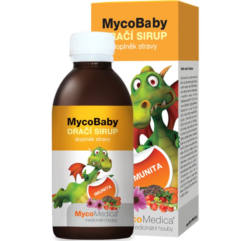 Zloženie Dračieho sirupu: Obsahuje glukózový sirup, prečistenú vodu a výťažky z liečivých húb a rastlín. V jednej dávke (5 ml) nájdete 50 mg extraktu z Reishi (Ganoderma lucidum) s 30% obsahom polysacharidov, 50 mg extraktu z Cordyceps (Cordyceps sinensis) tiež s 30% polysacharidmi a 50 mg 4:1 extraktu z koreňa Echinacey purpurovej (Echinacea purpurea). Okrem toho sirup obsahuje 50 mg extraktu z plodov aceroly (Malpighia glabra) s 25% obsahom vitamínu C, čo predstavuje 15% odporúčanej dennej dávky vitamínu C na dávku. Na zvýšenie chuti pridáva sirup aj 25 mg holandského kakaa na dávku.